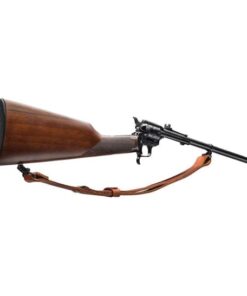 Introducing the rough Rider Rancher carbine chambered in 22 LR, featuring a 16 inches barrel, a 6 round capacity and a beautiful walnut stock. This latest addition to the heritage product line combines the versatility of a rifle with the classic appeal of a revolver, ensuring effortless handling and portability. Complete with an adjustable buckhorn sight and a leather sling, the Rancher enables you to effortlessly and precisely manage your ranch.