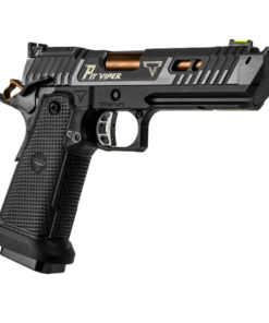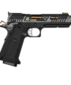 The TTI Pit Viper was created specifically for the most badass assassins to be the apex fighting pistol. Not only is this gun poised to take the crown for the most badass handgun in Hollywood history, Taran Butler sent it to take the overall title at the first ever USPSA 2-Gun Nationals in 2021. The Pit Viper was designed before the Sand Viper, but had to wait in the shadows to strike until now. The TTI Pit Viper let its sister take the limelight—which completely set the industry on fire with no Hollywood movie behind her… (yet) Like the TTI Sand Viper, nothing has been compromised in making this serpents hidden fangs strike. With a built in static fiber optic front sight, single port compensator, ghost profile adjustable rear sight, Extreme Engineering LiteSpeed Fire Control System, Aftec type Extractor, and seamlessly blended grip safety delivers reliability, accuracy and ergonomics like no other. This is the ultimate handgun.