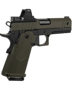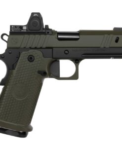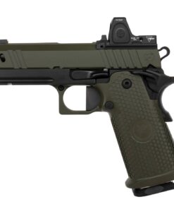 NIGHTHAWK CUSTOM TREASURER (9MM) 3.8″ DLC BARREL DOUBLE STACK UPGRADE WITH OD GREEN SLIDE & GRIP PANEL AND TRIJICON RMR (3.25 MOA)