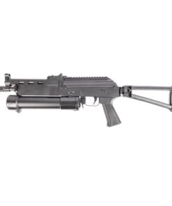Introducting the Soviet Arms AK-V ” Stizon”. In collaboration with Stuff and Things Inc., this AK-V has been transformed into a pistol reminiscent of the Russian PP-19 Bizon. The AK-V “Stizon” features a helical 55 round magazine, as well as a Bizon-style handguard. This pistol also retains the core AK-V features with a blowback-operated system and a hammer forged front trunnion and bolt/carrier.