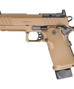 The Prodigy™ from Springfield Armory enhances the classic 1911 platform with a double-stack capacity and performance-driven features. Finished in durable Coyote Brown Cerakote®, the Prodigy boasts a polymer grip mounted to a forged steel frame, offering 17+1 and 20+1 capacities. Its 4.25-inch bull barrel with an 11-degree crown ensures match-grade accuracy. Optics-ready, the Prodigy utilizes AOS (Agency Optic System) plates with an integrated rear sight for proper alignment and an intuitive sight picture.